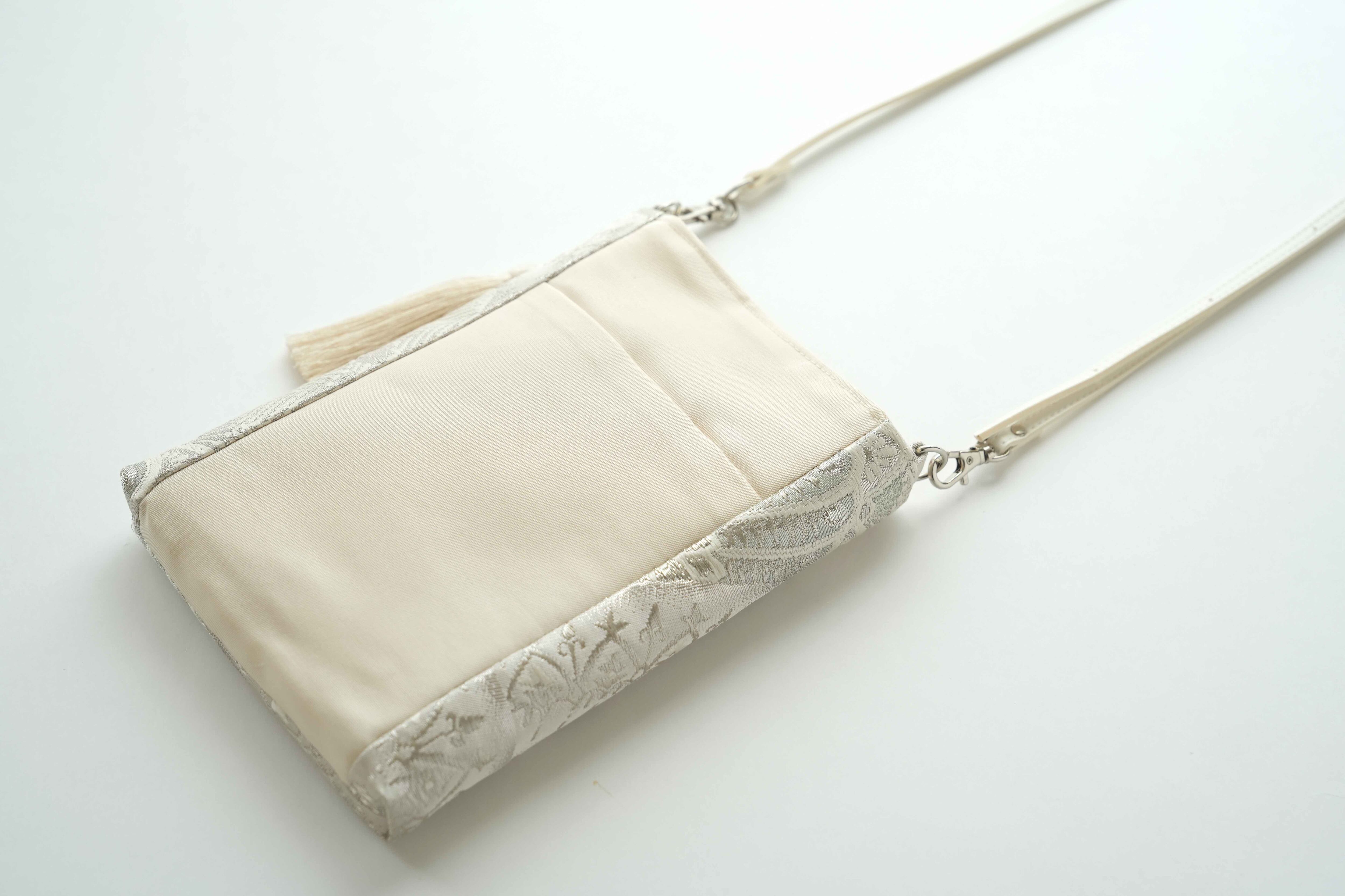 【花青海波模様 シルバー シルク帯リメイク スマホショルダーバッグ】特別な日、結婚式、パーティー、ギフトにも。