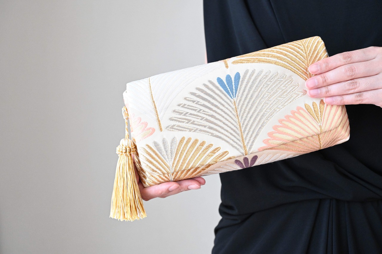 フォーマル帯のため、結婚式やパーティーのバッグとして、格も申し分なく、シンプルなワンピースに合わせるだけで、フォーマルな場にふさわしいワンランク上のコーディネートに。