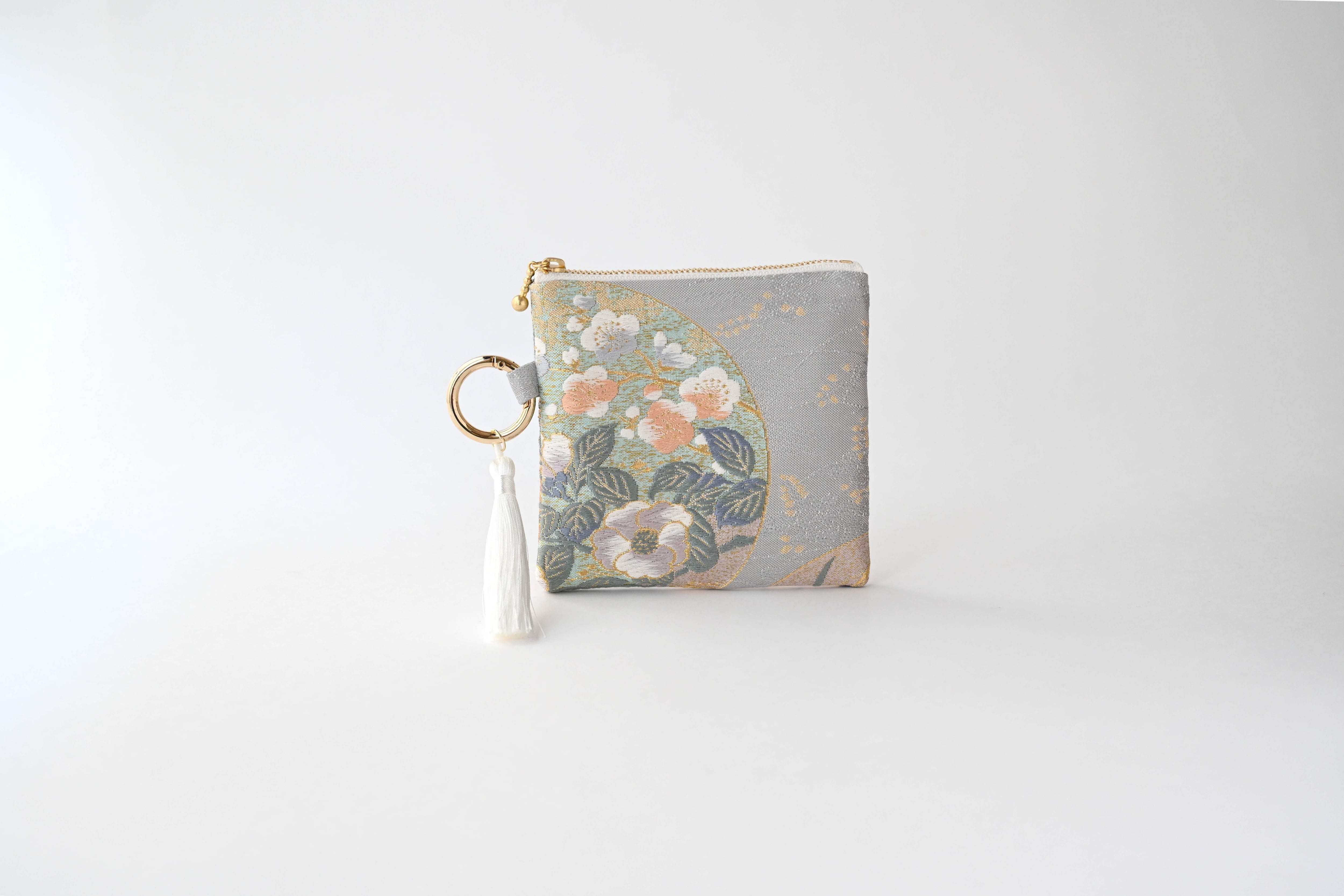 花丸文・華紋織出しのシルク帯で製作したバッグチャーム型スクエアポーチです。