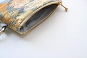 花丸文の中に華紋を織り出した、格調高い帯地は織りならではの立体感と奥行きがあり、特別感のあるポーチです。