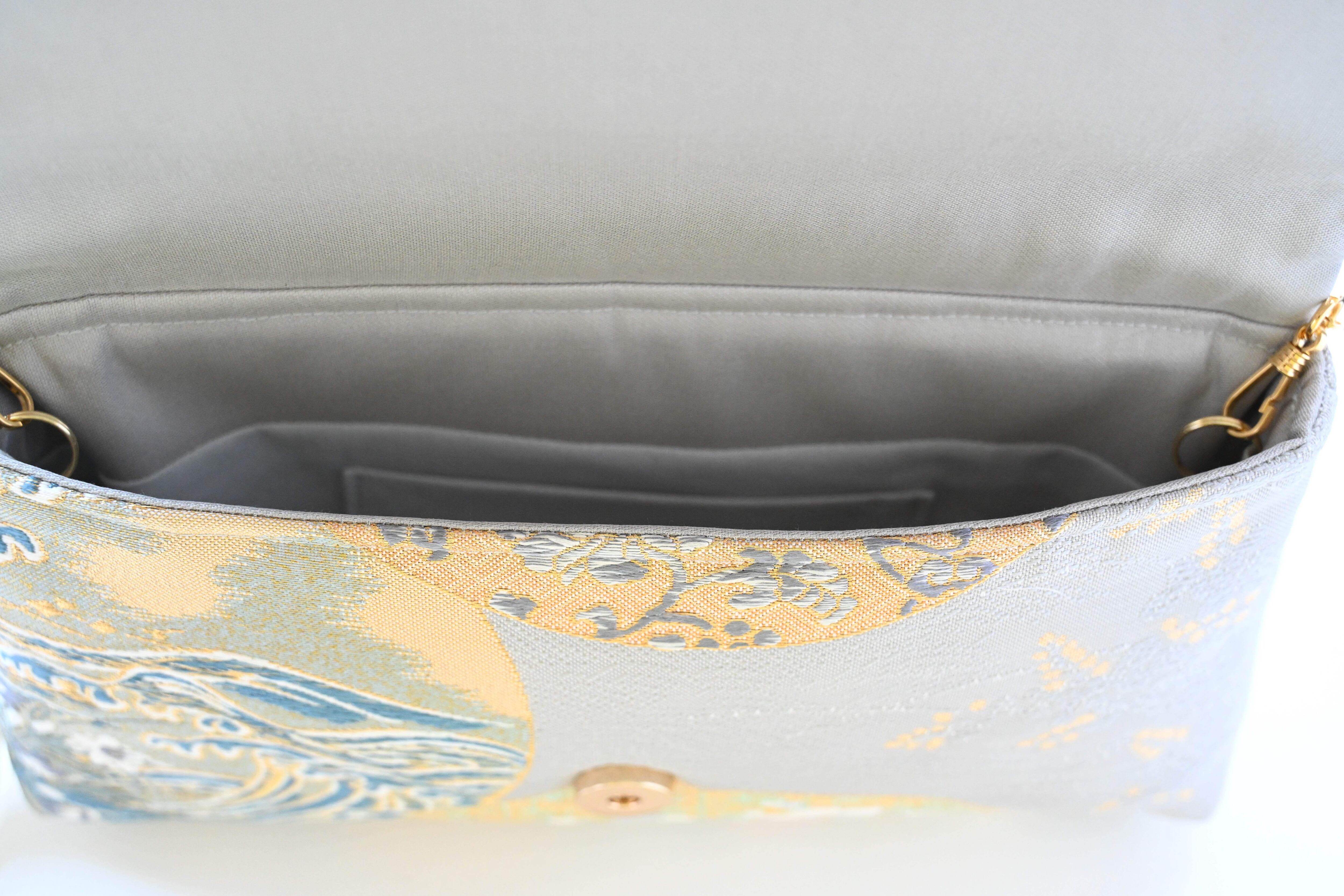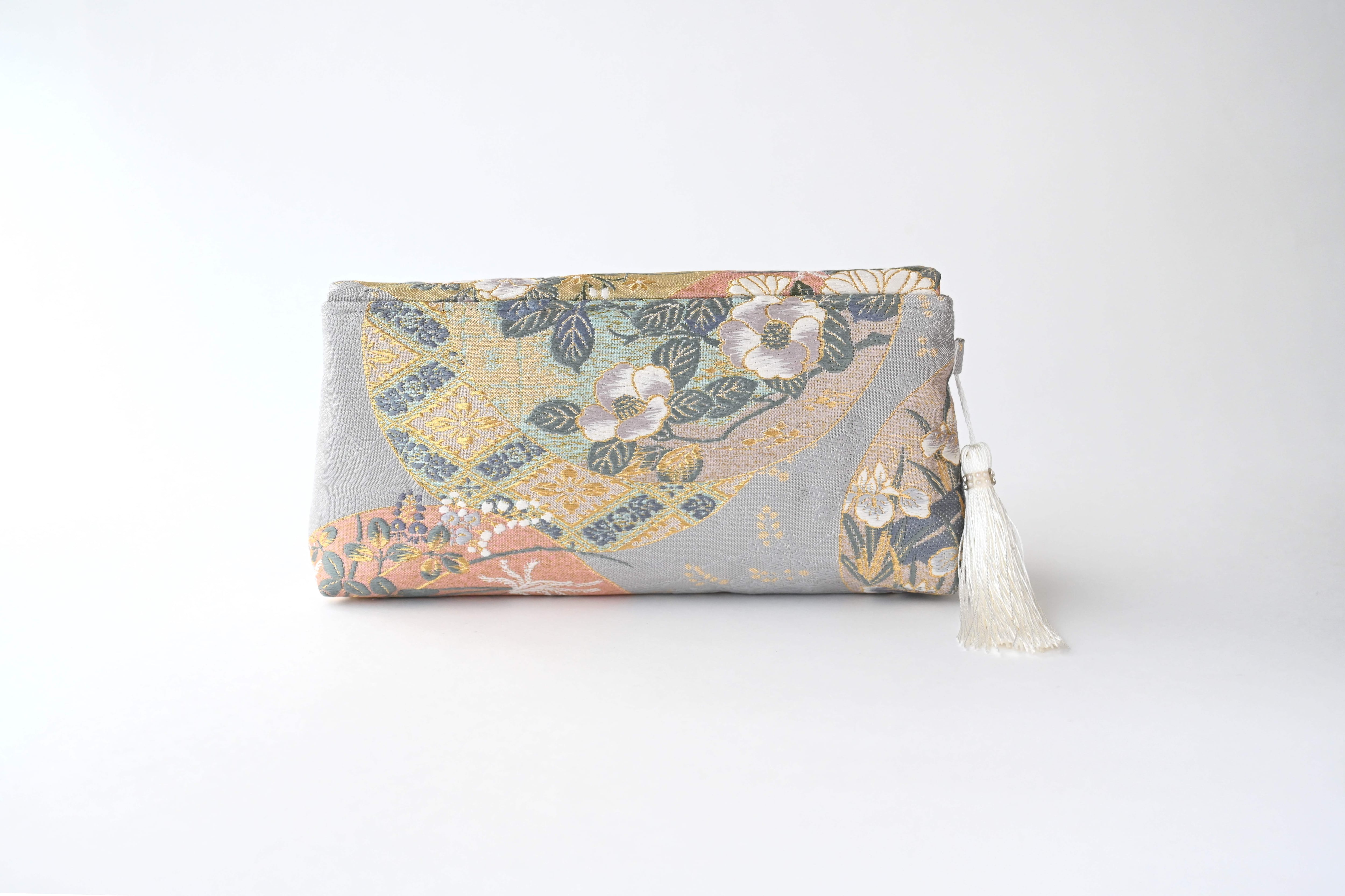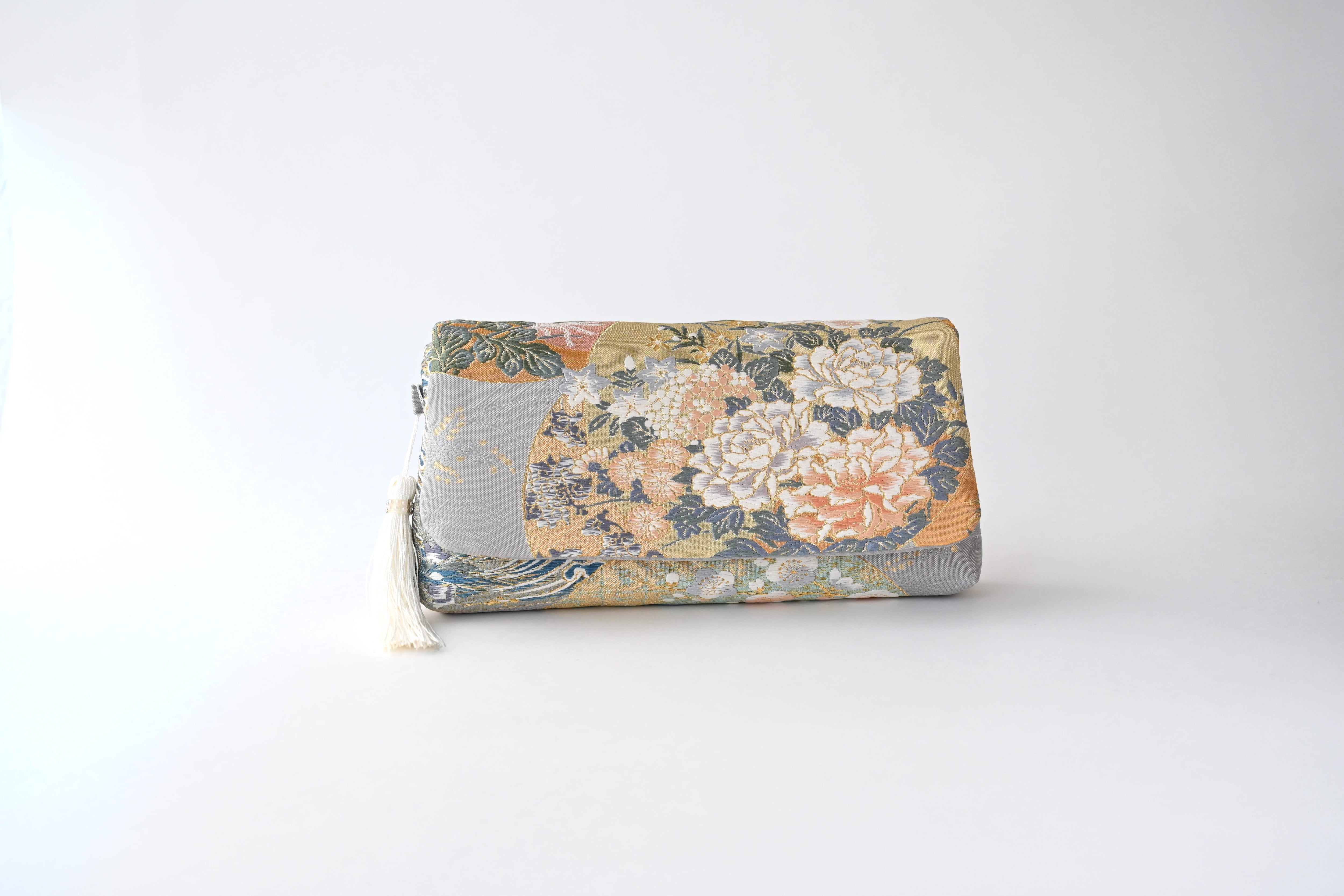 花丸文・華紋織出しのシルク帯で製作した2Wayクラッチ&ハンドバッグです。