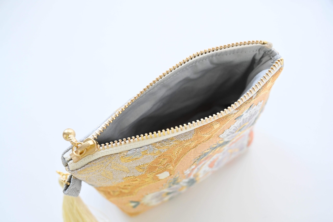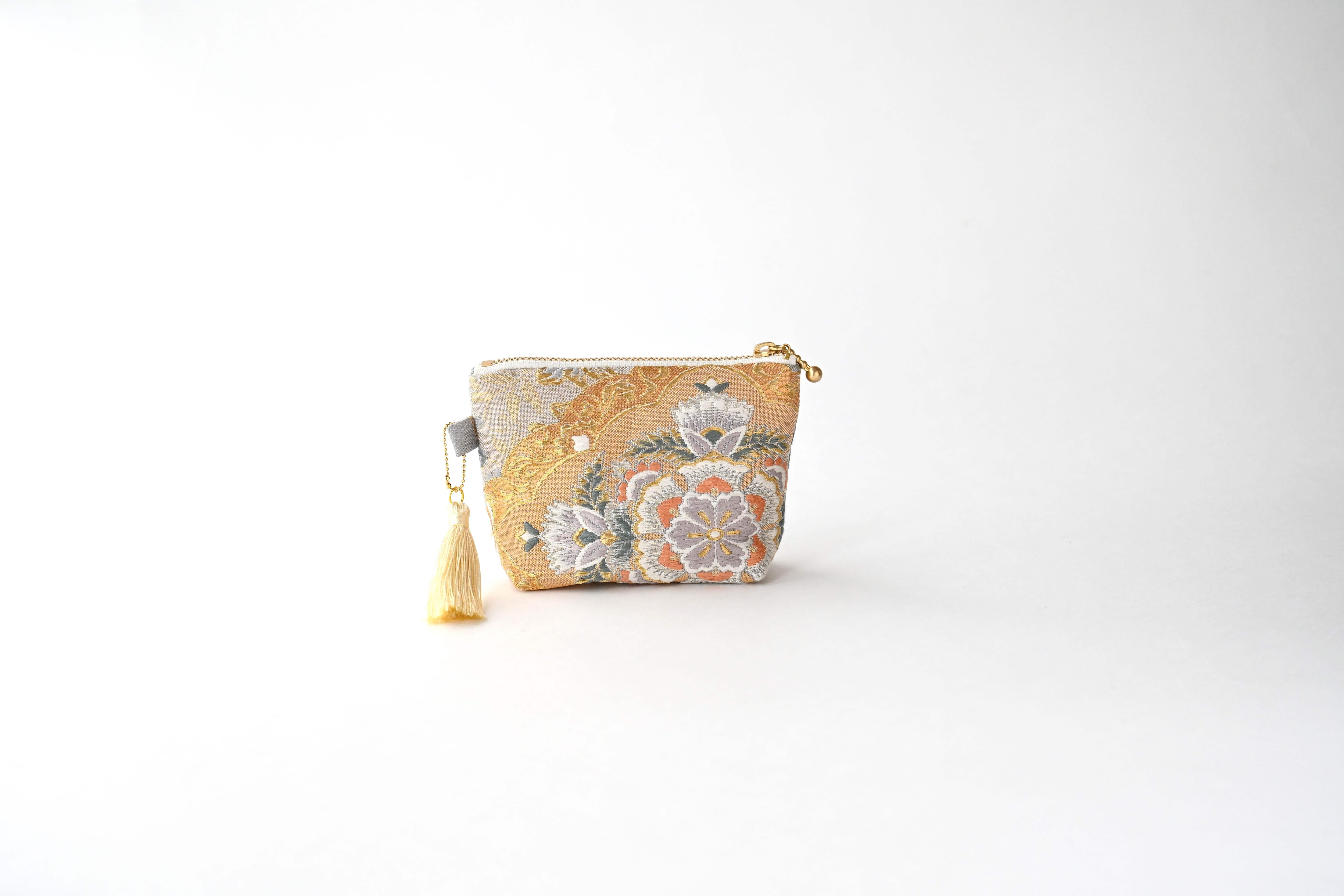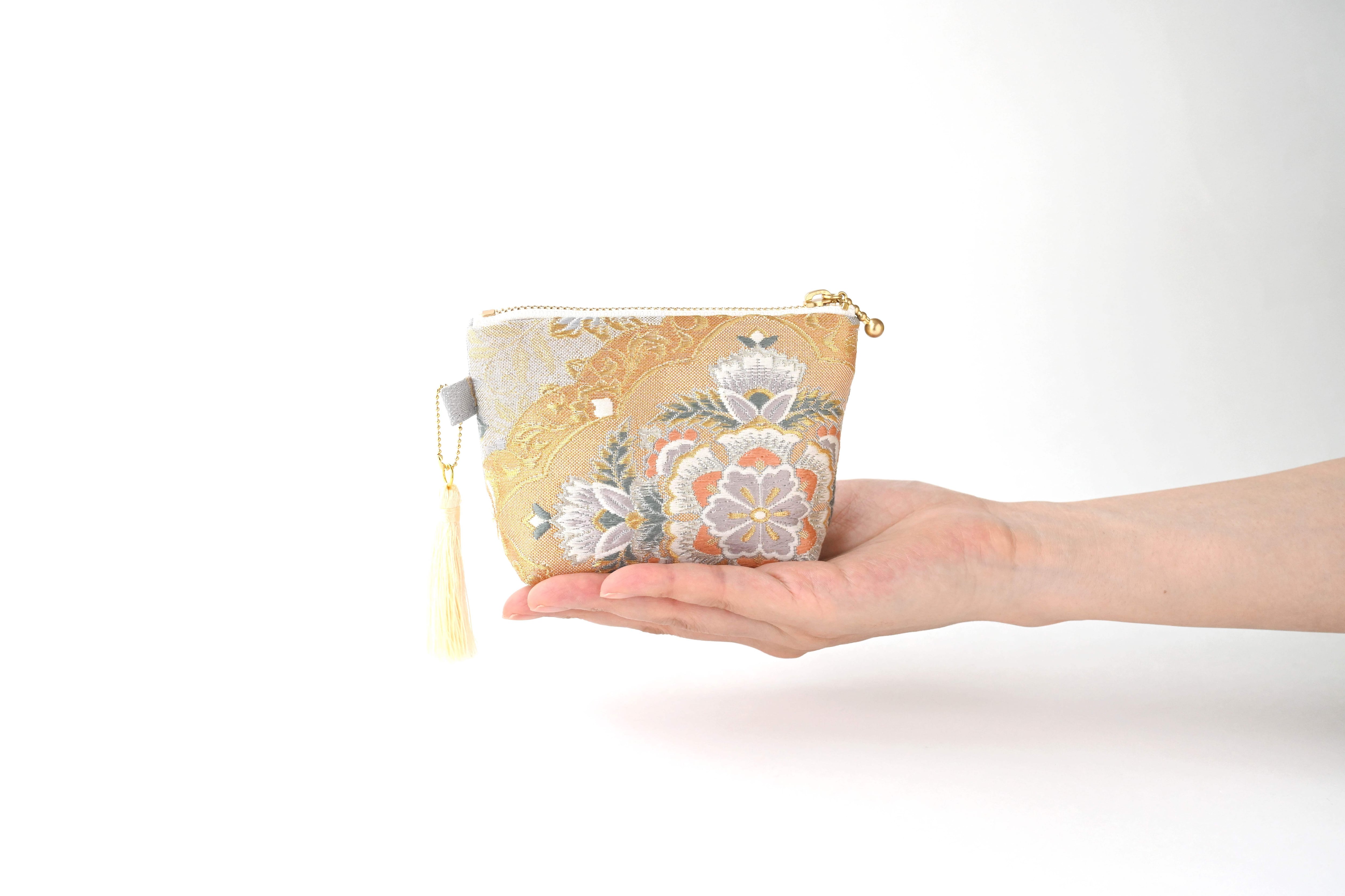 花丸文・華紋織出しシルク帯を使って製作したミニポーチです。