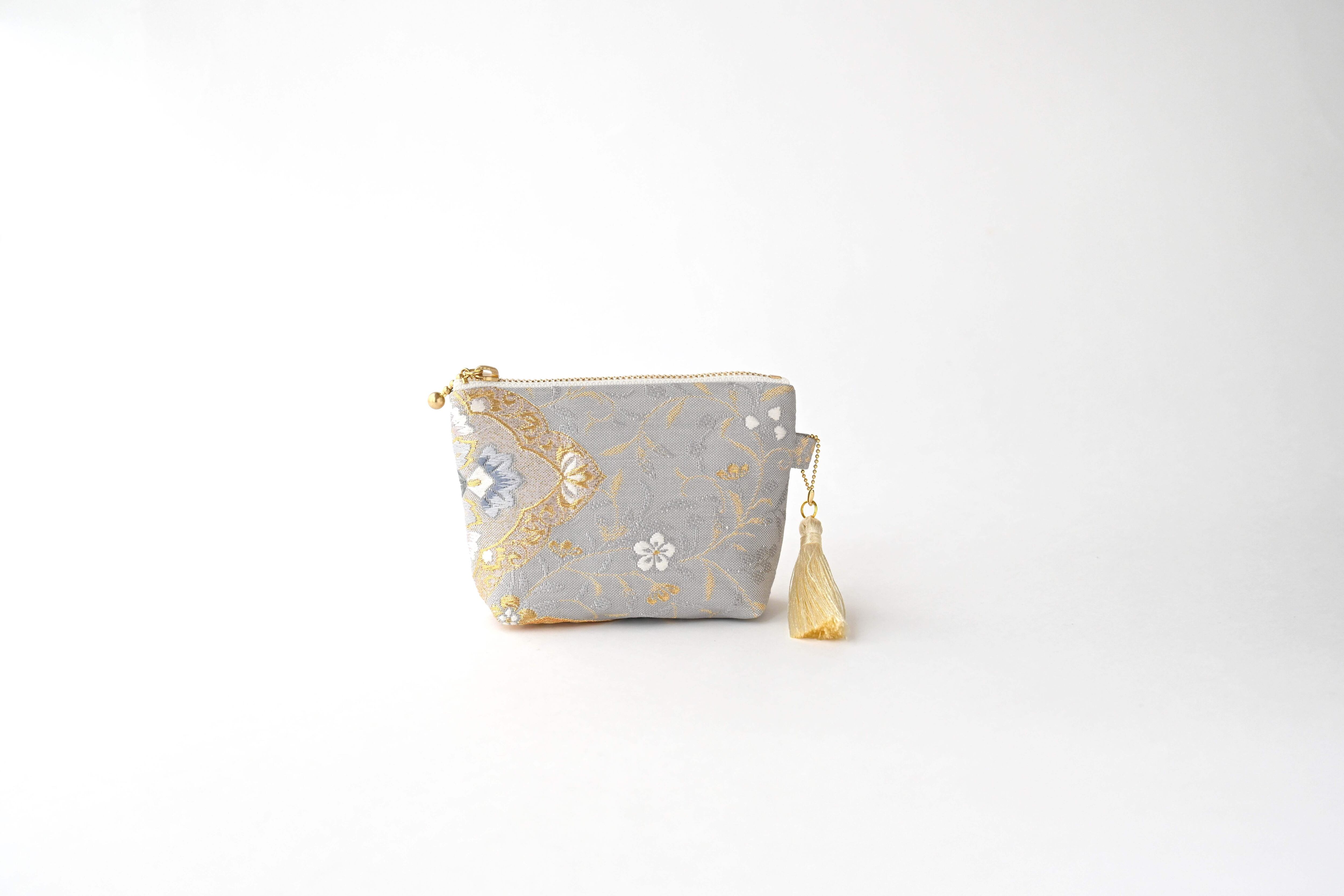 【花丸文・華紋織出し シルク帯リメイク ミニポーチ】カードケース、ポーチ小さめ、誕生日ギフトにも。