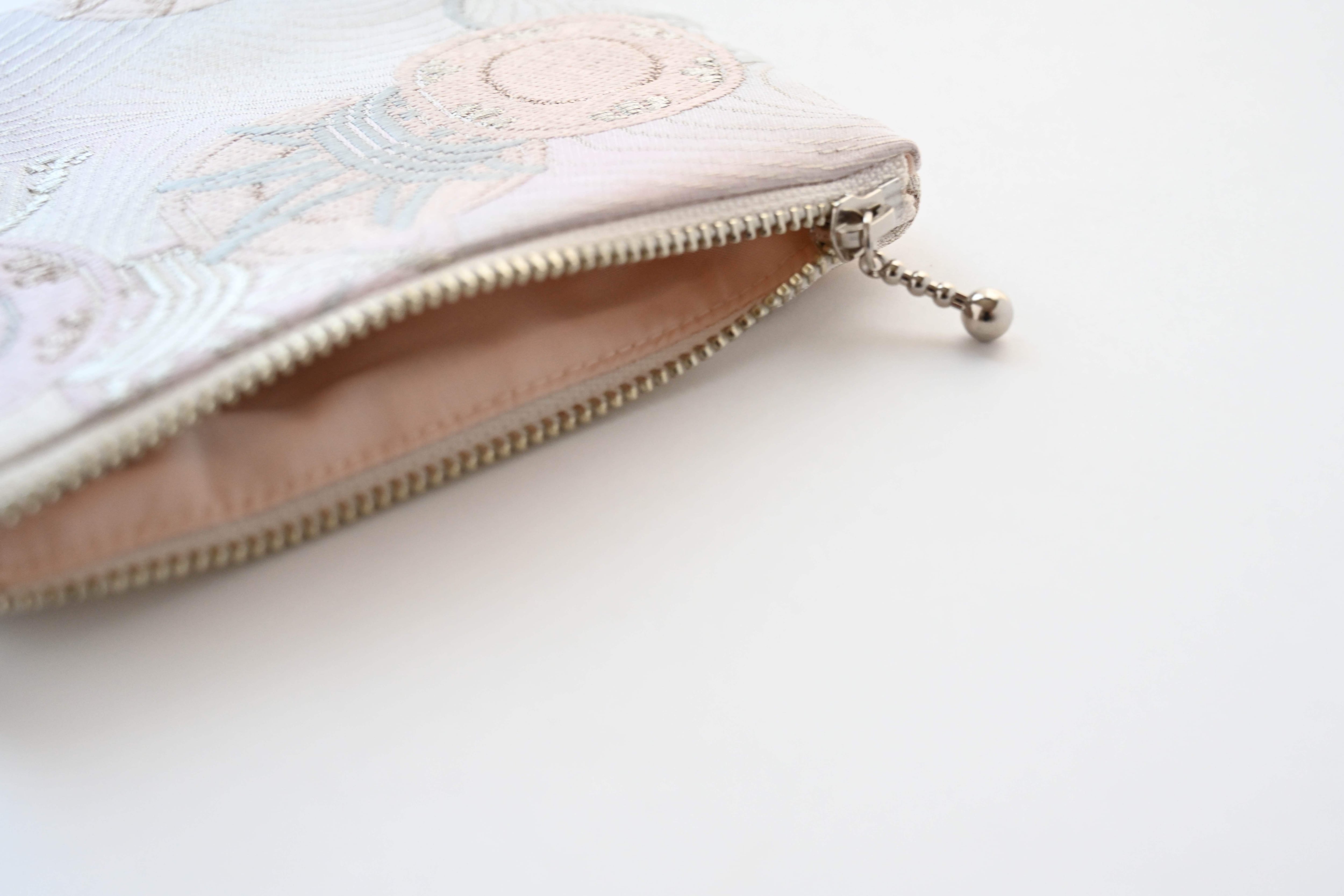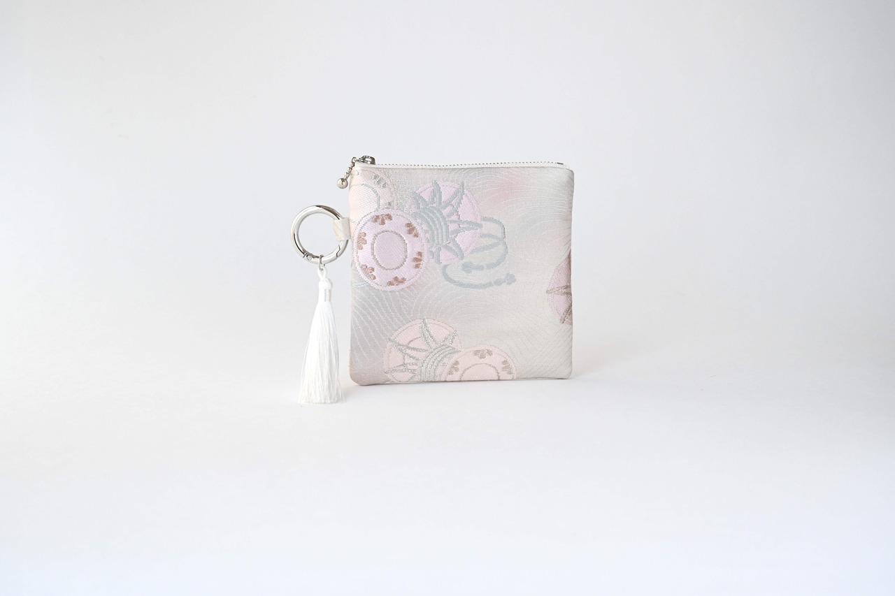 リユース帯を使っているため、市販のポーチにはない高級感があります。