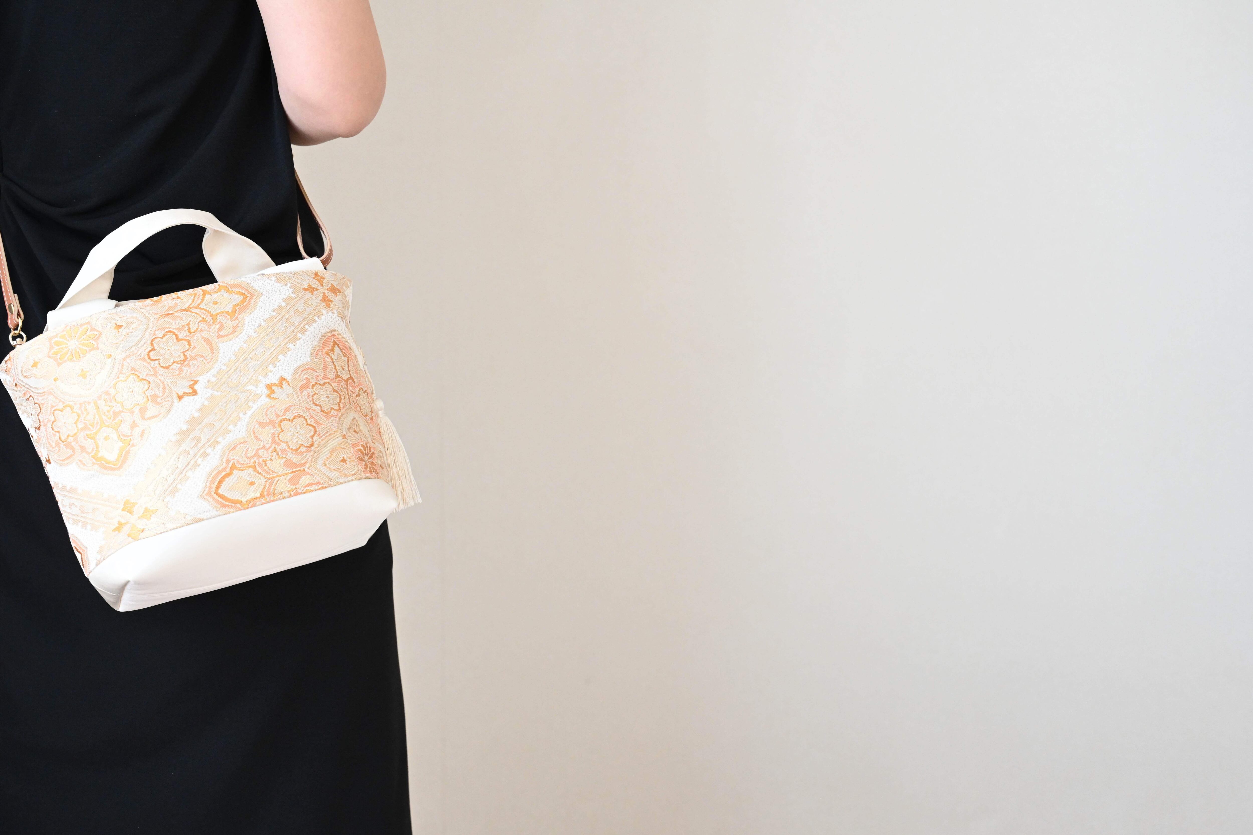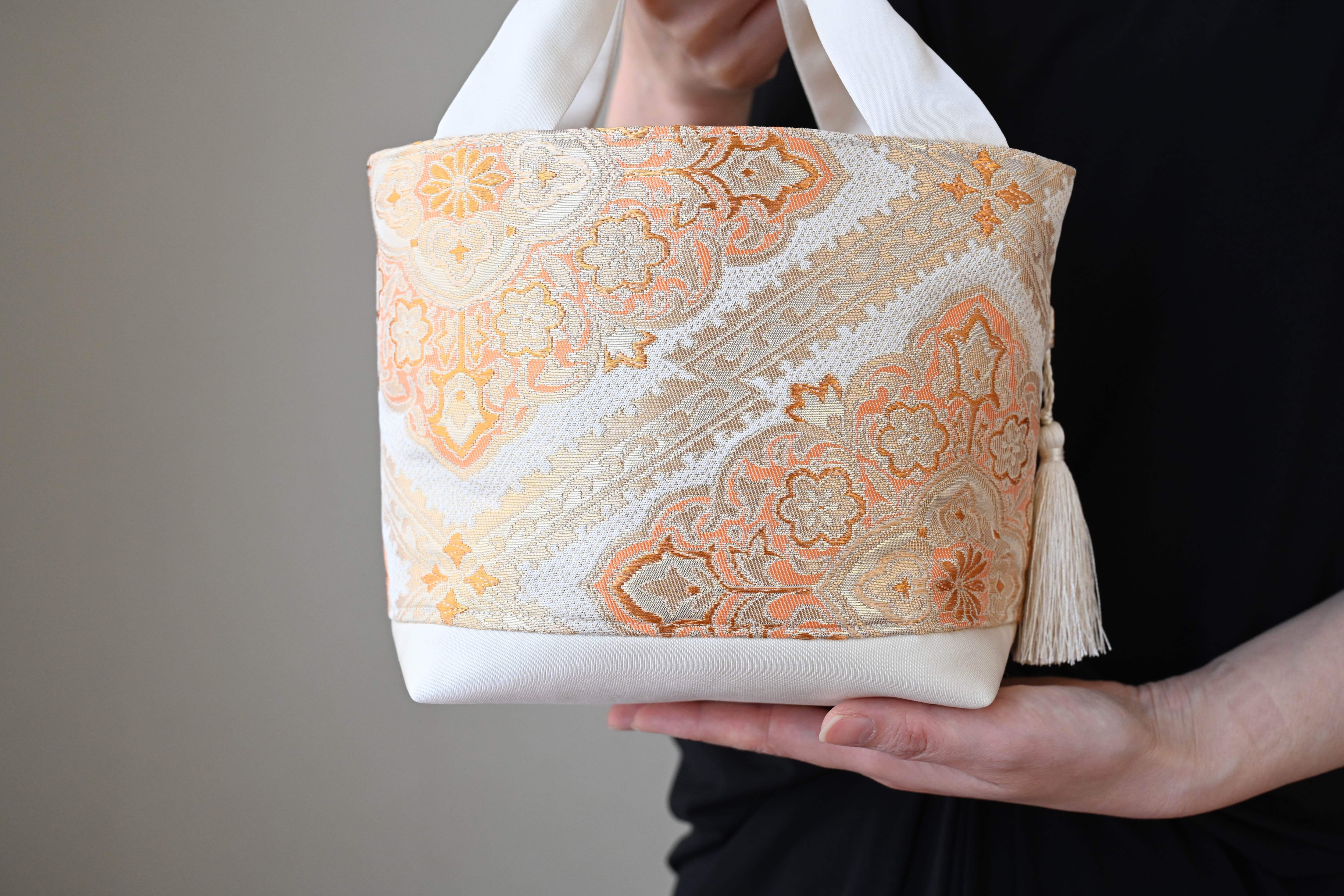 アパレル歴40年のパタンナー(型紙職人)が、試行錯誤を重ねながら完成させたオリジナルバッグです。プロならではの知識を生かし、シルク帯の高級感がより惹きたつ、緻密なラインにまで、こだわりを持って製作しております。