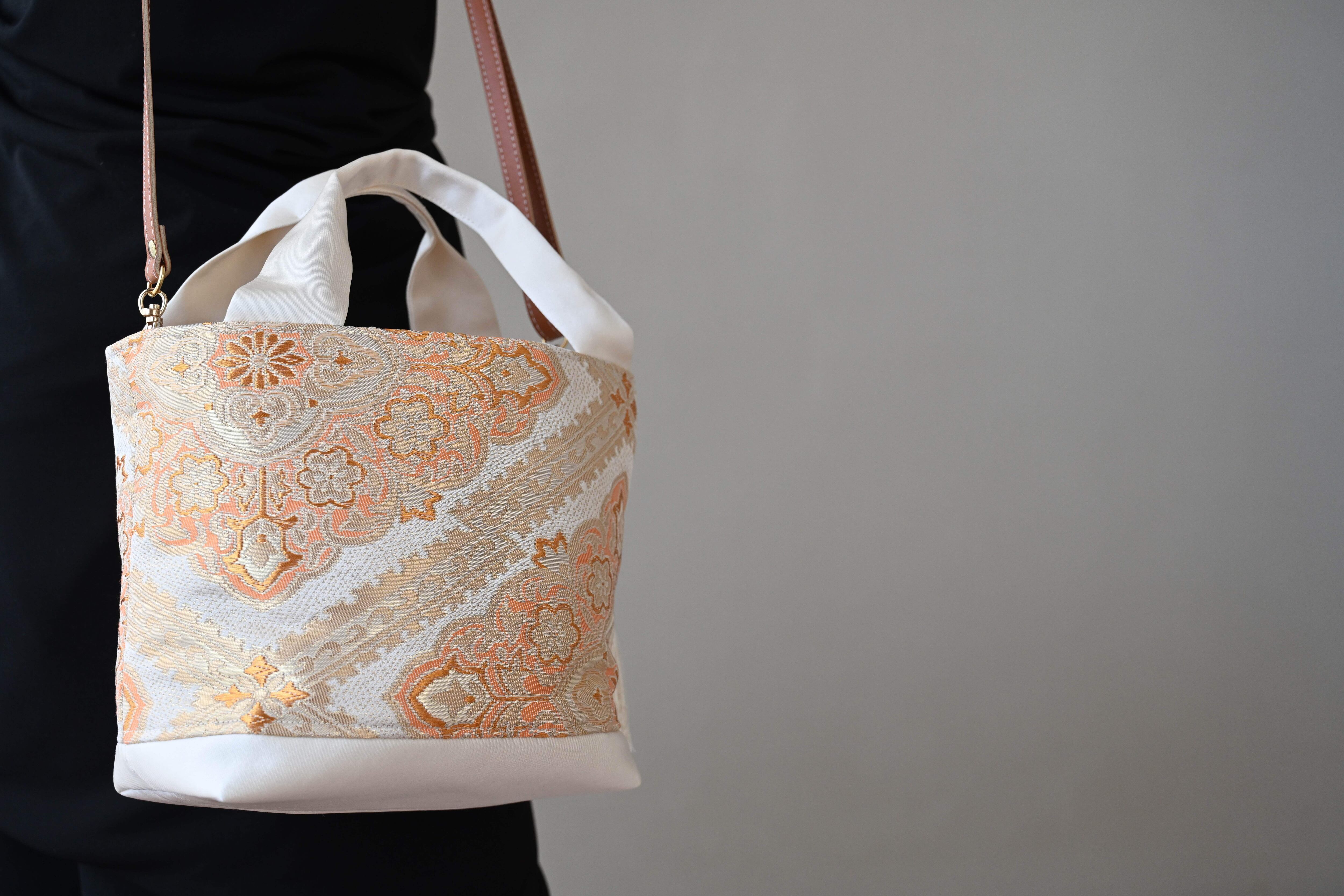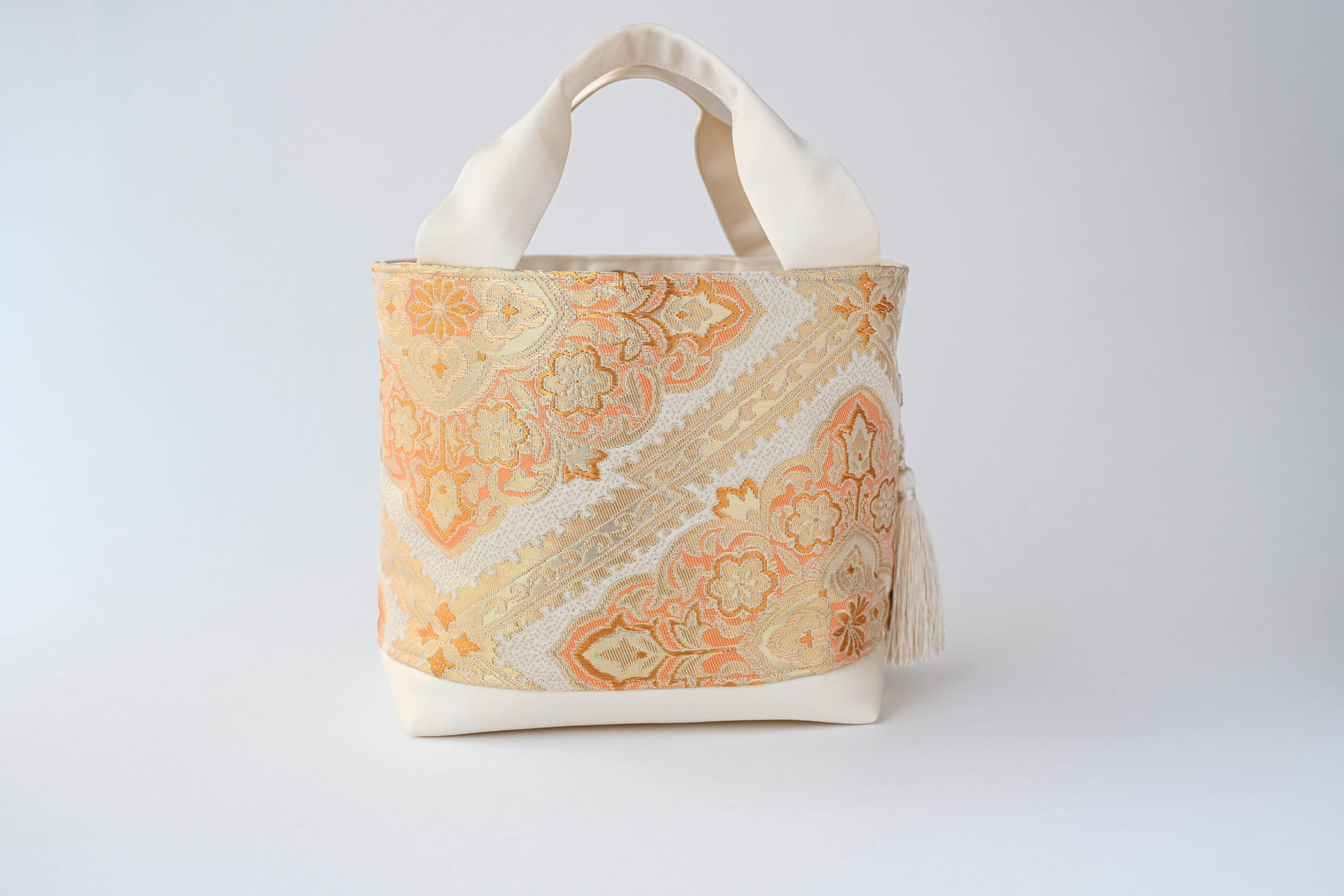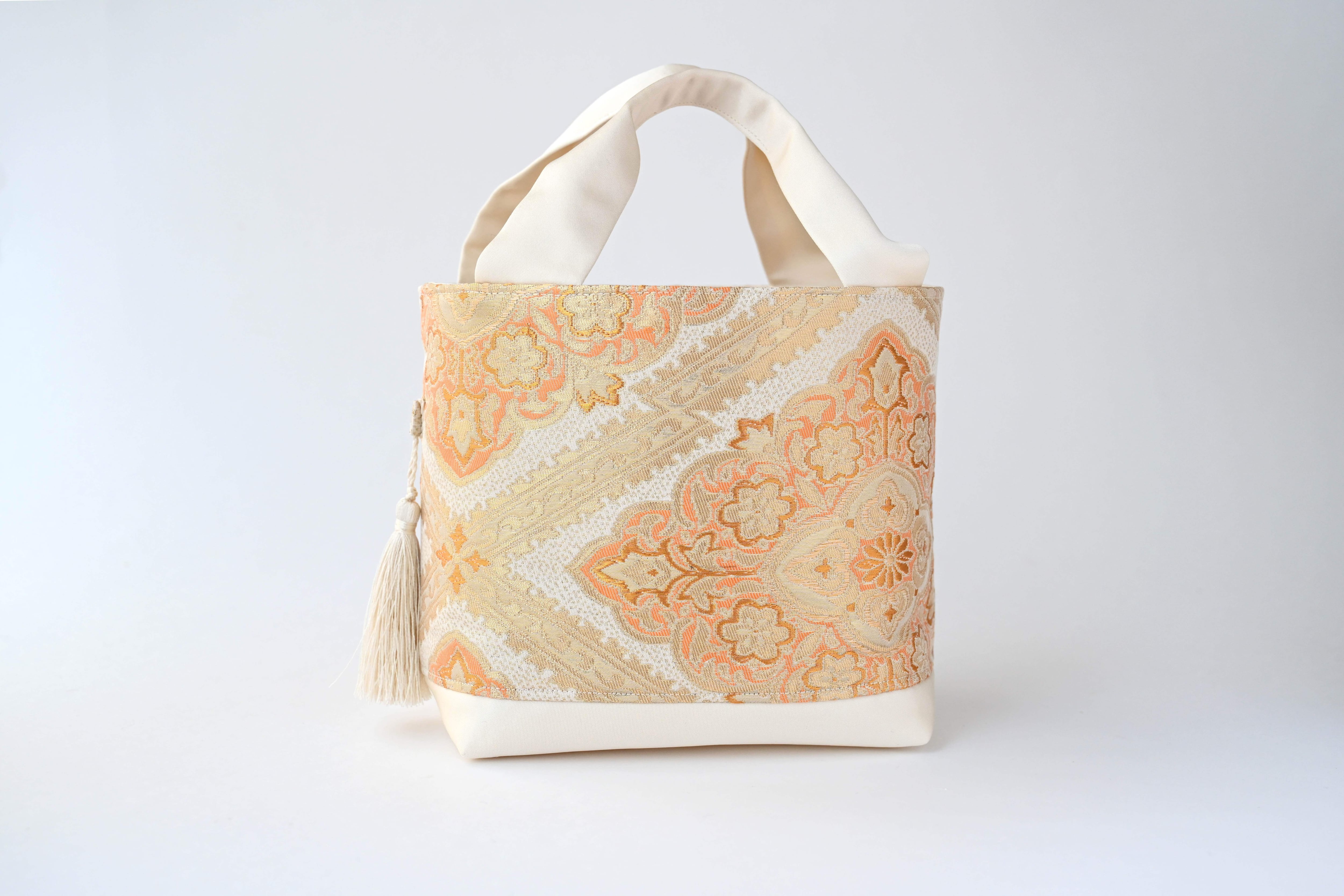 華紋様 ゴールドの帯地で製作したトートバッグです。